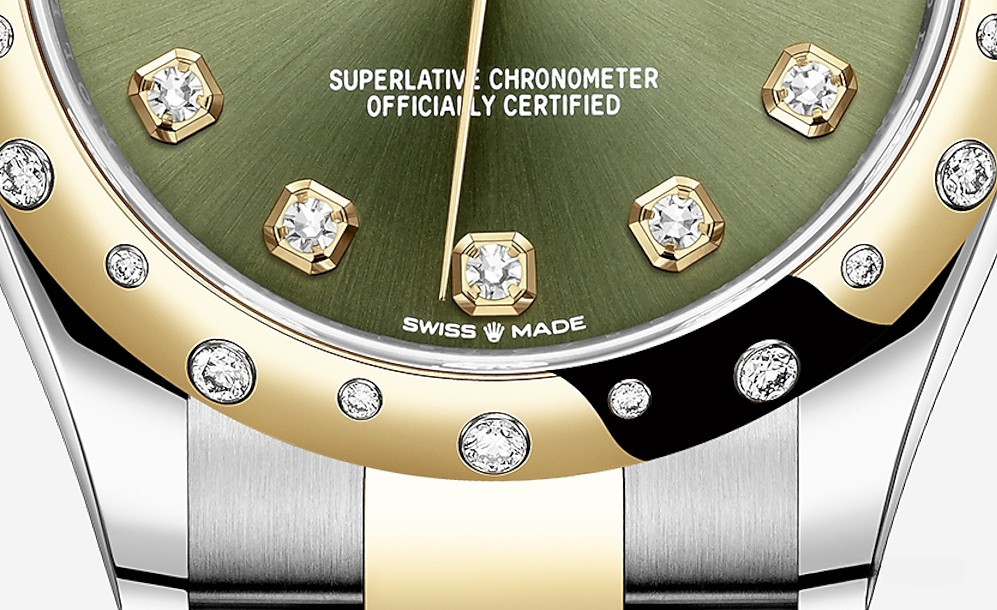 Водостойкие часы Rolex Datejust Datejust 31mm Steel and Yellow Gold выпущены в круглом корпусе из желтого золота 18к и нержавеющей стали. Размер составляет 31 мм, водонепроницаемость 100 м. Внутри корпуса установлен автоматический механизм. На зеленом циферблате с 10-ю белыми бриллиантами отображаются часы, минуты, секунды, дата. Часы комплектуются браслетом из желтого золота 18к и нержавеющей стали. Безель из белых бриллиантов.