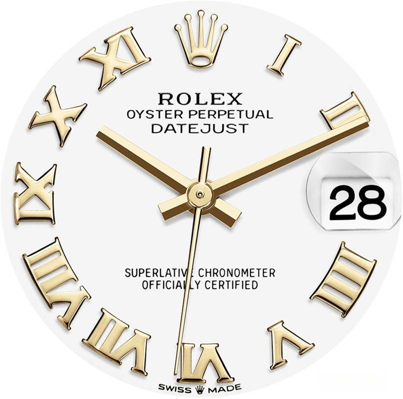Водостойкие часы Rolex Datejust Datejust 31mm Steel and Yellow Gold выпущены в круглом корпусе из желтого золота 18к и нержавеющей стали. Размер составляет 31 мм, водонепроницаемость 100 м. Внутри корпуса установлен автоматический механизм. На белом циферблате отображаются часы, минуты, секунды, дата. Часы комплектуются браслетом из желтого золота 18к и нержавеющей стали. Безель из белых бриллиантов.