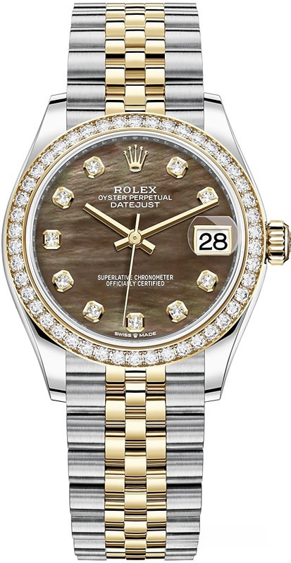 Водостойкие часы Rolex Datejust Datejust 31mm Steel and Yellow Gold выпущены в круглом корпусе из желтого золота 18к и нержавеющей стали. Размер составляет 31 мм, водонепроницаемость 100 м. Внутри корпуса установлен автоматический механизм. На коричневом жемчужном циферблате с 10-ю белыми бриллиантами отображаются часы, минуты, секунды, дата. Часы комплектуются браслетом из желтого золота, 18к и нержавеющей стали. Безель из белых бриллиантов.