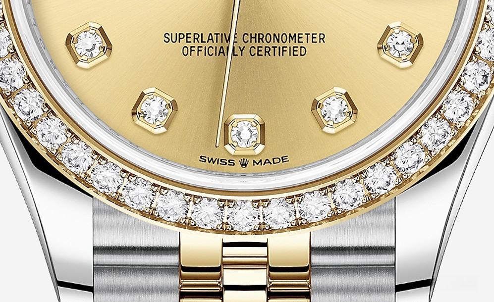 Водостойкие часы Rolex Datejust Datejust 31mm Steel and Yellow Gold выпущены в круглом корпусе из желтого золота 18к и нержавеющей стали. Размер составляет 31 мм, водонепроницаемость 100 м. Внутри корпуса установлен автоматический механизм. На золотистом циферблате с 10-ю белыми бриллиантами отображаются часы, минуты, секунды, дата. Часы комплектуются браслетом из желтого золота 18к и нержавеющей стали. Безель из белых бриллиантов.