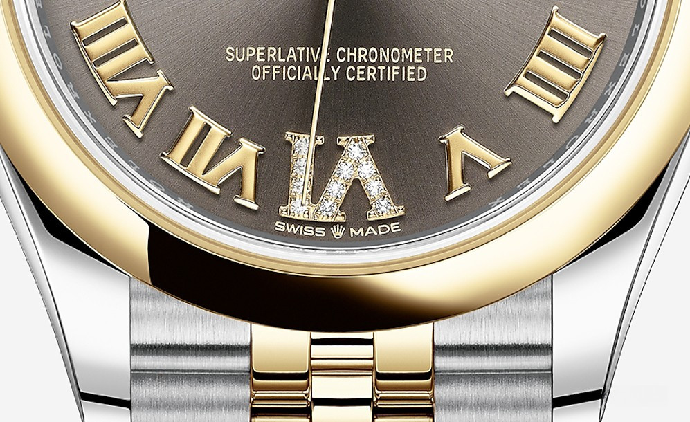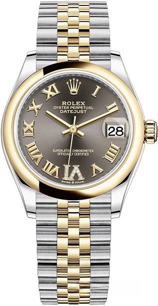 Водостойкие часы Rolex Datejust Datejust 31mm Steel and Yellow Gold выпущены в круглом корпусе из желтого золота 18к и нержавеющей стали. Размер составляет 31 мм, водонепроницаемость 100 м. Внутри корпуса установлен автоматический механизм. На сером циферблате с белыми бриллиантами отображаются часы, минуты, секунды, дата. Часы комплектуются браслетом из желтого золота 18к и нержавеющей стали.