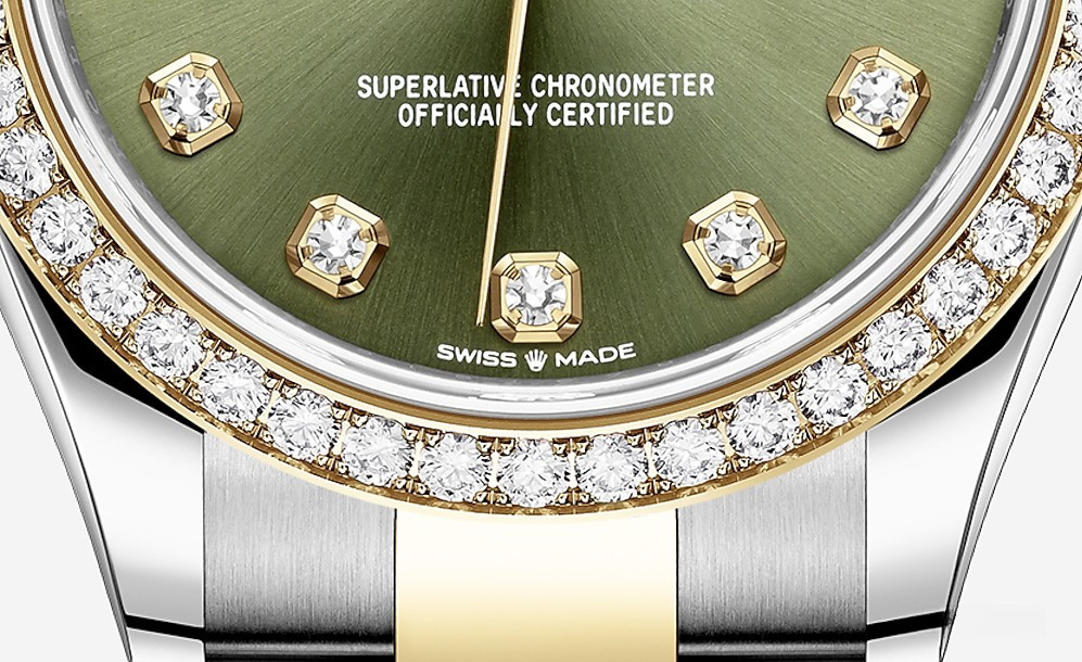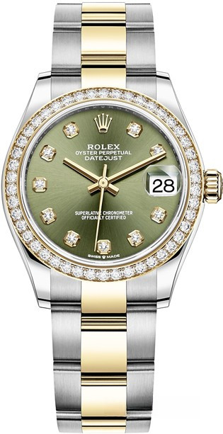 Водостойкие часы Rolex Datejust Datejust 31mm Steel and Yellow Gold выпущены в круглом корпусе из желтого золота 18к и нержавеющей стали. Размер составляет 31 мм, водонепроницаемость 100 м. Внутри корпуса установлен автоматический механизм. На зеленом циферблате с 10-ю белыми бриллиантами отображаются часы, минуты, секунды, дата. Часы комплектуются браслетом из желтого золота 18к и нержавеющей стали. Безель из белых бриллиантов.