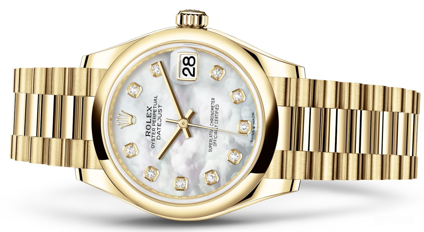 Часы Rolex Datejust Datejust 31mm Yellow Gold 278248-0016 выпущены в круглом корпусе из желтого золота 18к. Размер составляет 31 мм, водонепроницаемость 100 м. Внутри корпуса установлен автоматический механизм. На белом жемчужном циферблате с 10-ю белыми бриллиантами отображаются часы, минуты, секунды, дата. Часы комплектуются браслетом из желтого золота 18к.