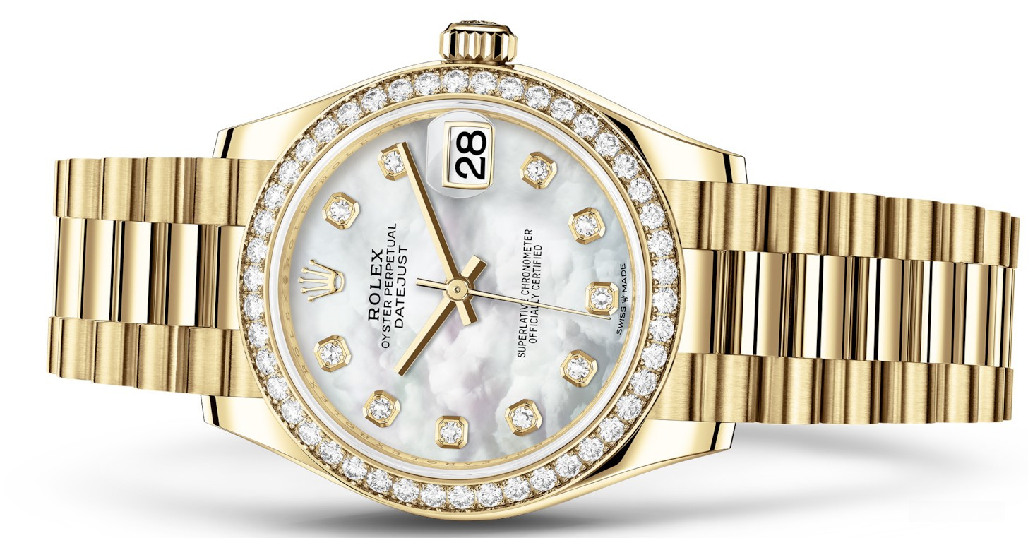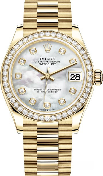 Часы Rolex Datejust Datejust 31mm Yellow Gold 278288rbr-0006 выпущены в круглом корпусе из желтого золота 18к. Размер составляет 31 мм, водонепроницаемость 100 м. Внутри корпуса установлен автоматический механизм. На белом жемчужном циферблате с 10-ю белыми бриллиантами отображаются часы, минуты, секунды, дата. Часы комплектуются браслетом из желтого золота 18к. Безель из белых бриллиантов.