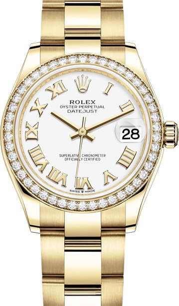 Часы Rolex Datejust Datejust 31mm Yellow Gold 278288rbr-0008 выпущены в круглом корпусе из желтого золота 18к. Размер составляет 31 мм, водонепроницаемость 100 м. Внутри корпуса установлен автоматический механизм. На белом циферблате отображаются часы, минуты, секунды, дата. Часы комплектуются браслетом из желтого золота 18к. Безель из белых бриллиантов.
