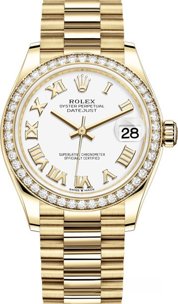 Часы Rolex Datejust Datejust 31mm Yellow Gold 278288rbr-0009 выпущены в круглом корпусе из желтого золота 18к. Размер составляет 31 мм, водонепроницаемость 100 м. Внутри корпуса установлен автоматический механизм. На белом циферблате отображаются часы, минуты, секунды, дата. Часы комплектуются браслетом из желтого золота 18к. Безель из белых бриллиантов.