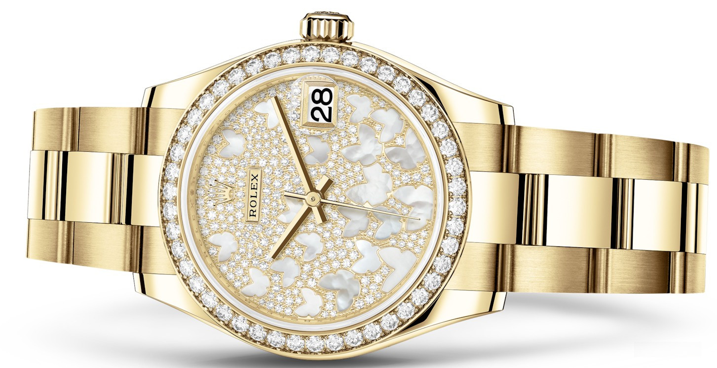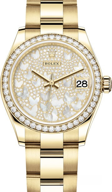 Часы Rolex Datejust Datejust 31mm Yellow Gold 278288rbr-0010 выпущены в круглом корпусе из желтого золота 18к. Размер составляет 31 мм, водонепроницаемость 100 м. Внутри корпуса установлен автоматический механизм. На золотистом с белым жемчужным и белыми бриллиантами циферблате отображаются часы, минуты, секунды, дата. Часы комплектуются браслетом из желтого золота 18к. Безель из белых бриллиантов.
