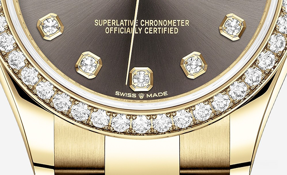 Часы Rolex Datejust Datejust 31mm Yellow Gold выпущены в круглом корпусе из желтого золота 18к. Размер составляет 31 мм, водонепроницаемость 100 м. Внутри корпуса установлен автоматический механизм. На сером циферблате с 10-ю белыми бриллиантами отображаются часы, минуты, секунды, дата. Часы комплектуются браслетом из желтого золота 18к. Безель из белых бриллиантов.