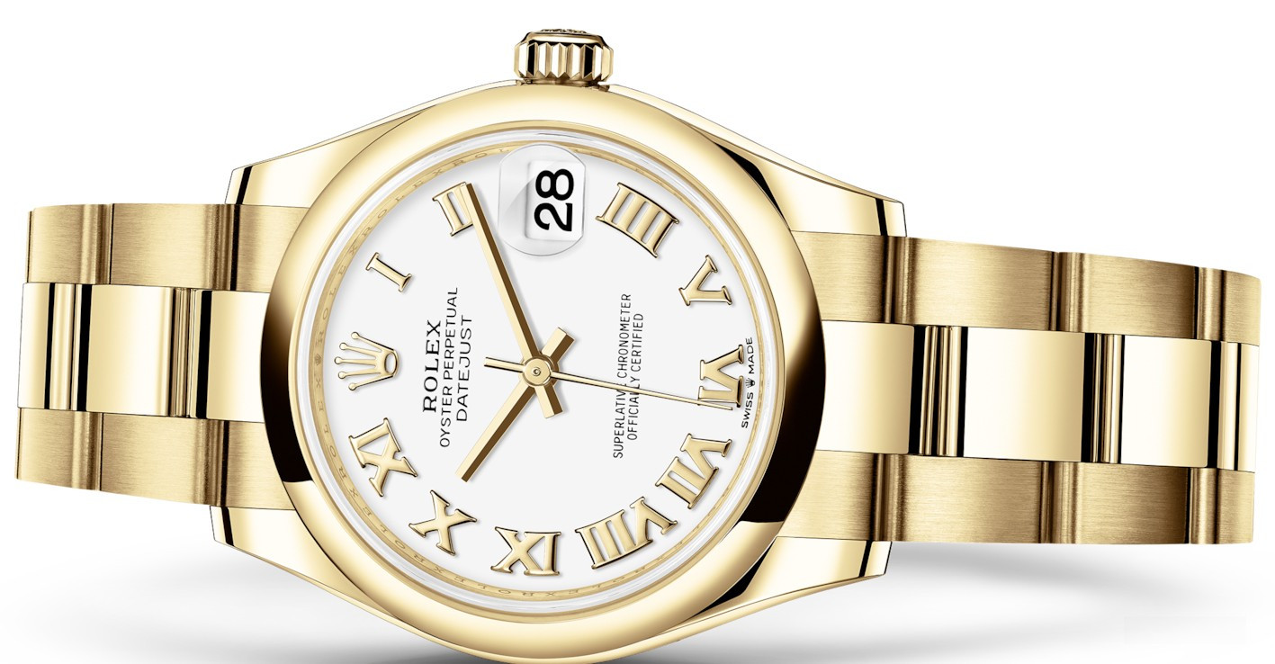Часы Rolex Datejust Datejust 31mm Yellow Gold 278248-0019 выпущены в круглом корпусе из желтого золота 18к. Размер составляет 31 мм, водонепроницаемость 100 м. Внутри корпуса установлен автоматический механизм. На белом циферблате отображаются часы, минуты, секунды, дата. Часы комплектуются браслетом из желтого золота 18к.