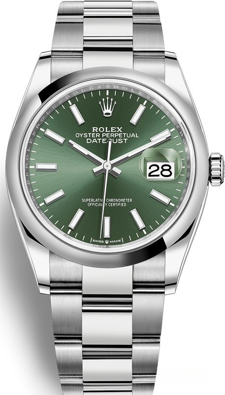 Водостойкие часы Rolex Datejust 36 mm Steel являются официально сертифицированным хронометром COSC выпущены в круглом корпусе из нержавеющей стали. Размер составляет 36 мм, водонепроницаемость 100 м. Внутри корпуса установлен автоматический механизм, Калибр 3235, обеспечивающий запас хода 70 часов. На зеленом циферблате отображаются часы, минуты, секунды дата. Часы комплектуются браслетом из нержавеющей стали.
