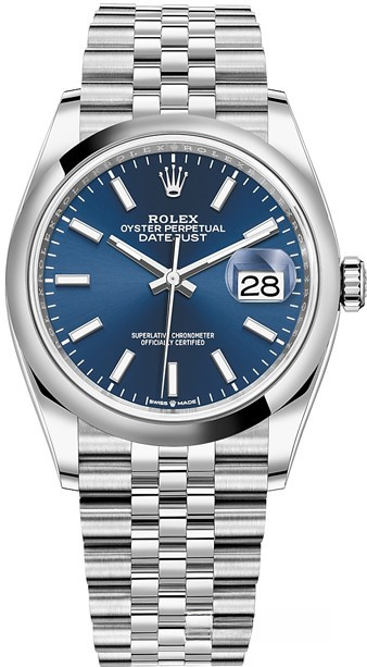 Водостойкие часы Rolex Datejust Datejust 36mm Steel являются официально сертифицированным хронометром COSC, выпущены в круглом корпусе из нержавеющей стали. Размер составляет 36 мм, водонепроницаемость 100 м. Внутри корпуса установлен автоматический механизм, обеспечивающий запас хода 48 часов. На синем циферблате отображаются часы, минуты, секунды, дата. Часы комплектуются браслетом из нержавеющей стали с откидной застежкой.