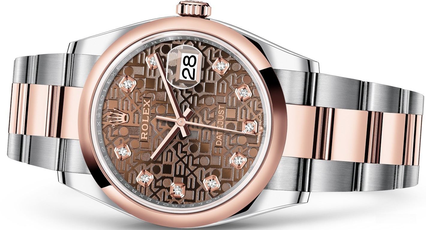 Часы Rolex 126201-0026 изготовлены из нержавеющей стали и розового золота 18к размером 36 х 11 мм. Внутри корпуса установлен автоматический механизм, Калибр 3235 с запасом хода 70 часов. Механизм имеет сертификат швейцарского хронометра, выдаваемый сверхточным часам, успешно прошедшим тестирование в Официальном швейцарском институте хронометрии (COSC). Браслет из розового золота и нержавеющей стали. Циферблат коричневый гильошированный с 10-ю белыми бриллиантами. Водонепроницаемость до 100 метров.