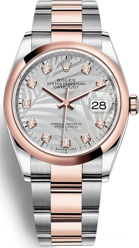 Часы Rolex Datejust 36 mm изготовлены из нержавеющей стали и розового золота 18к размером 36 х 11 мм. Внутри корпуса установлен автоматический механизм, Калибр 3235 с запасом хода 70 часов. Механизм имеет сертификат швейцарского хронометра, выдаваемый сверхточным часам, успешно прошедшим тестирование в Официальном швейцарском институте хронометрии (COSC). Браслет из розового золота и нержавеющей стали. Циферблат серебристый, с 10-ю белыми бриллиантами. Водонепроницаемость до 100 метров.