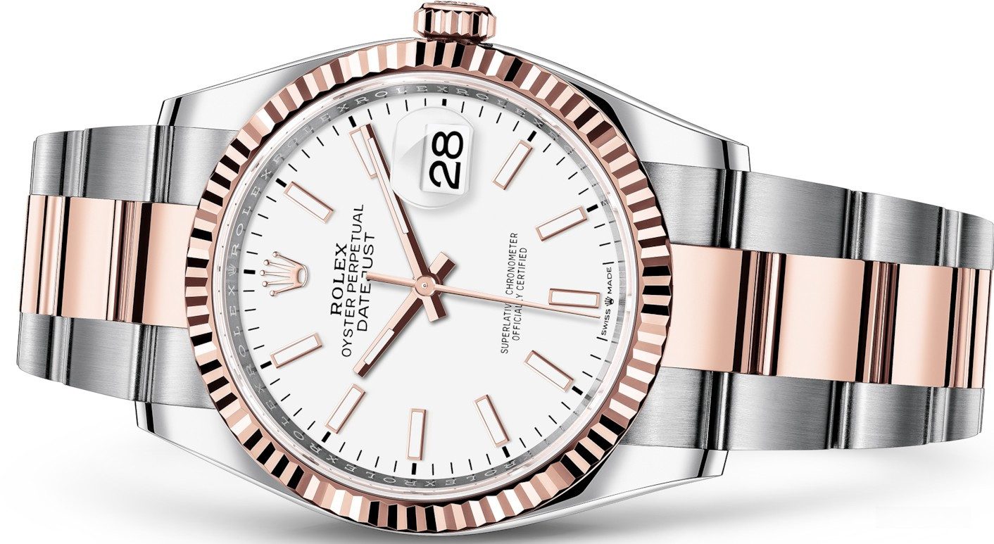 Часы Rolex 126231-0018 изготовлены из нержавеющей стали и розового золота 18к размером 36 х 11 мм. Внутри корпуса установлен автоматический механизм, Калибр 3235 с запасом хода 70 часов. Механизм имеет сертификат швейцарского хронометра, выдаваемый сверхточным часам, успешно прошедшим тестирование в Официальном швейцарском институте хронометрии (COSC). Браслет из розового золота и нержавеющей стали. Циферблат белый. Водонепроницаемость до 100 метров.