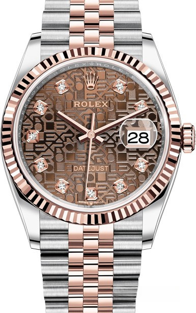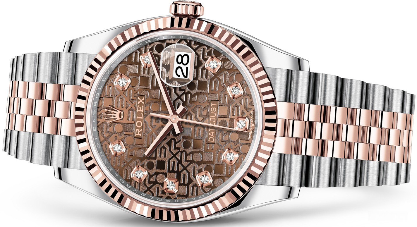 Часы Rolex 126231-0025 изготовлены из нержавеющей стали и розового золота 18к размером 36 х 11 мм. Внутри корпуса установлен автоматический механизм, Калибр 3135 с запасом хода 48 часов. Механизм имеет сертификат швейцарского хронометра, выдаваемый сверхточным часам, успешно прошедшим тестирование в Официальном швейцарском институте хронометрии (COSC). Браслет из розового золота и нержавеющей стали. Циферблат коричневый гильошированный с 10-ю белыми бриллиантами.
