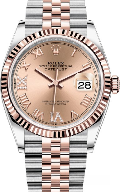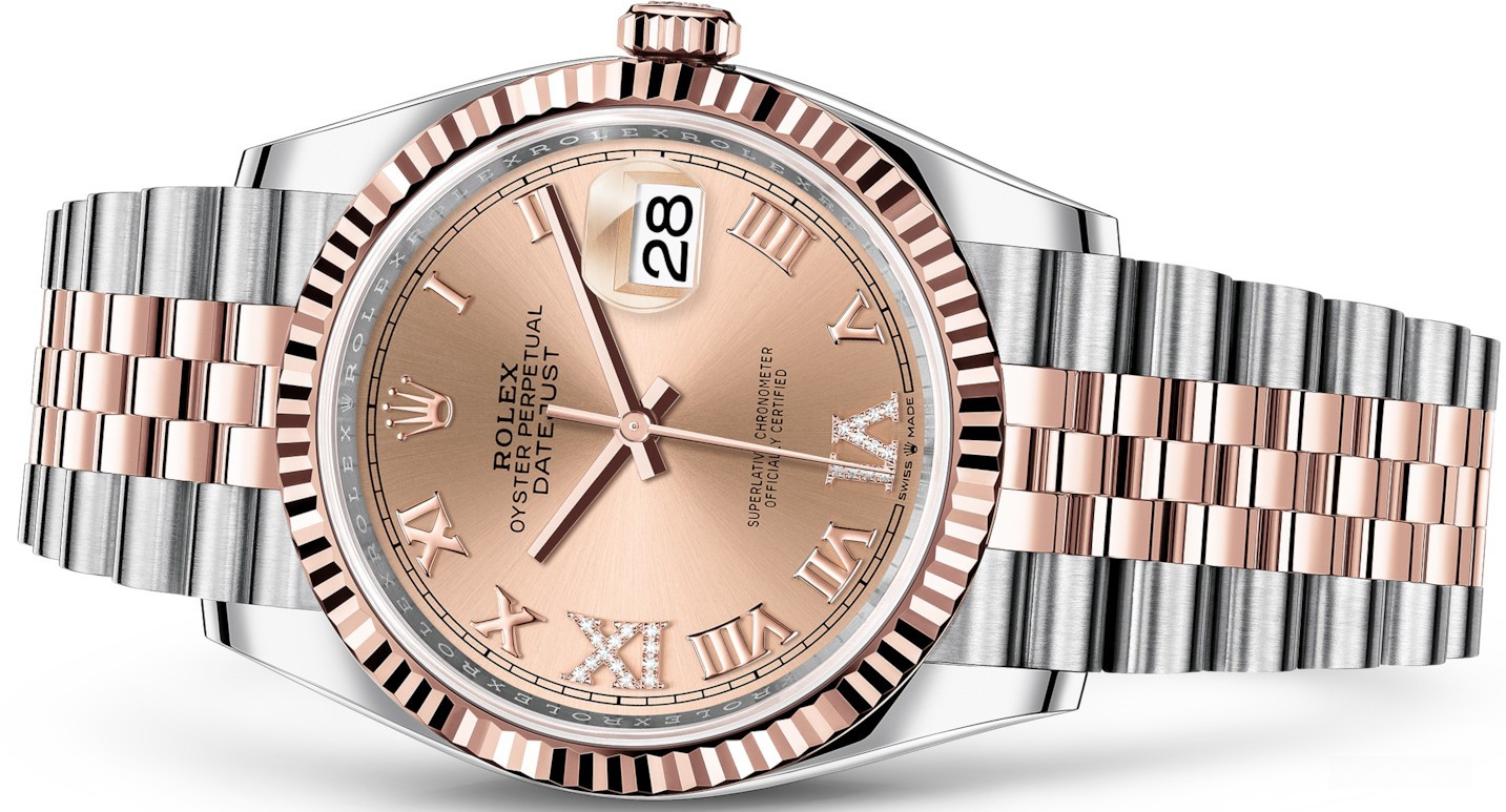 Часы Rolex 126231-0027 изготовлены из нержавеющей стали и розового золота 18к размером 36 х 11 мм. Внутри корпуса установлен автоматический механизм, Калибр 3235 с запасом хода 70 часов. Механизм имеет сертификат швейцарского хронометра, выдаваемый сверхточным часам, успешно прошедшим тестирование в Официальном швейцарском институте хронометрии (COSC). Браслет из розового золота и нержавеющей стали. Циферблат золотистый с белыми бриллиантами. Водонепроницаемость до 100 метров.