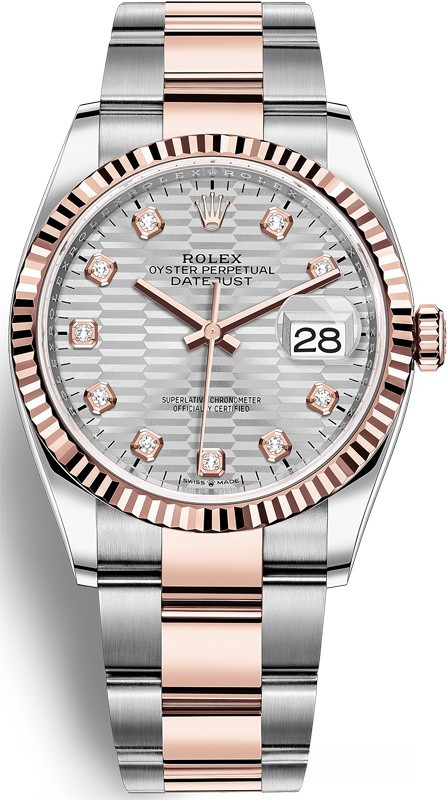 Часы Rolex Datejust 36 mm изготовлены из нержавеющей стали и розового золота 18к размером 36 х 11 мм. Внутри корпуса установлен автоматический механизм, Калибр 3235 с запасом хода 70 часов. Механизм имеет сертификат швейцарского хронометра, выдаваемый сверхточным часам, успешно прошедшим тестирование в Официальном швейцарском институте хронометрии (COSC). Браслет из розового золота и нержавеющей стали. Циферблат серебристый, с 10-ю белыми бриллиантами. Водонепроницаемость до 100 метров.