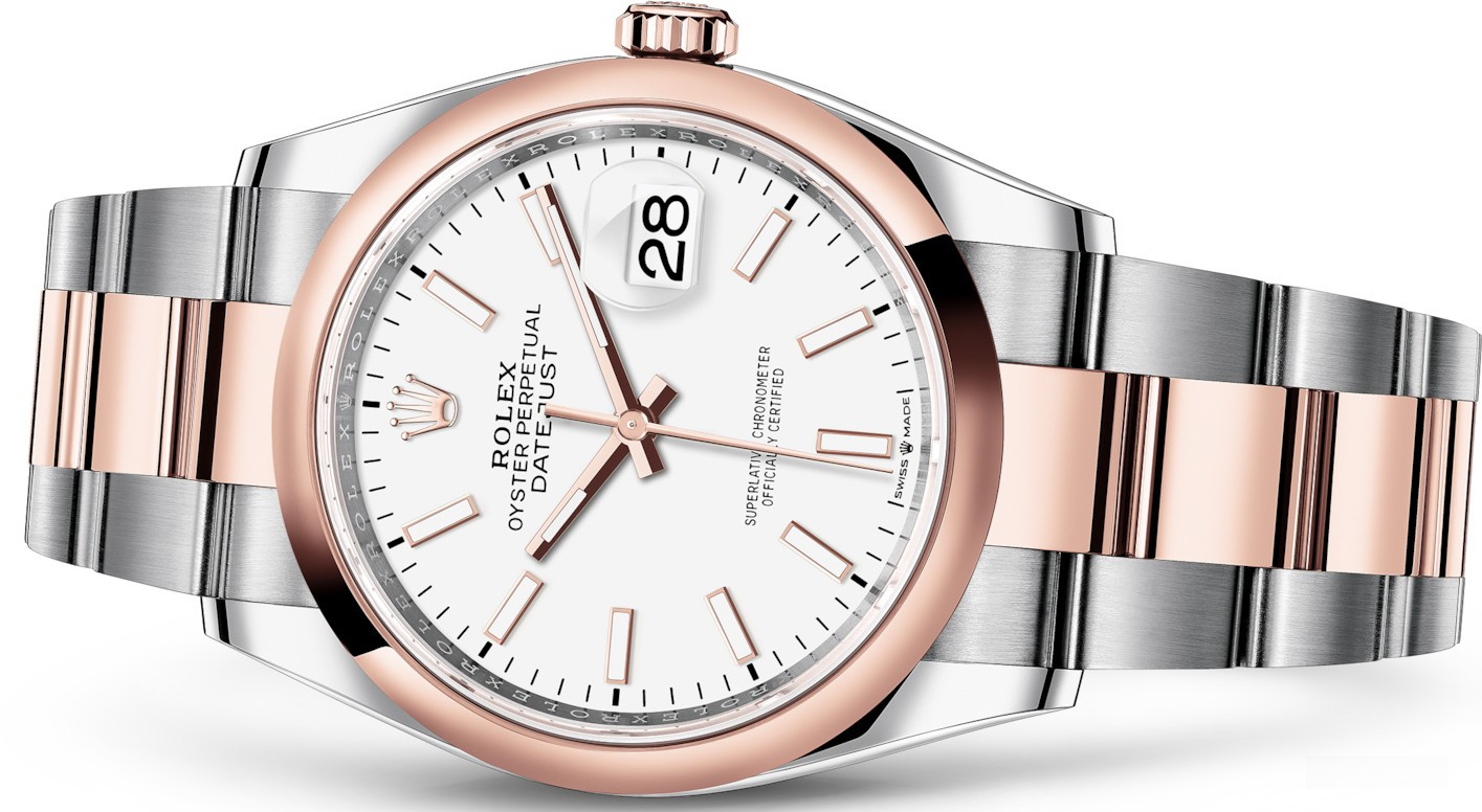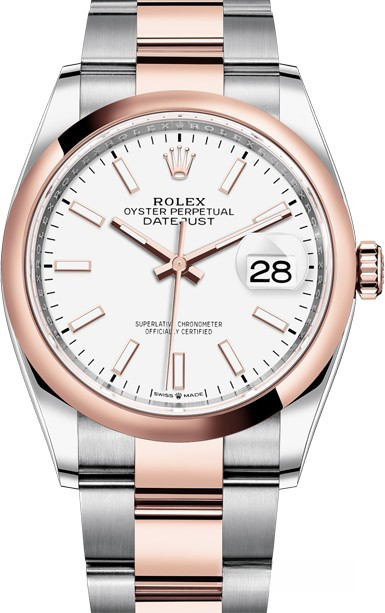 Часы Rolex 126201-0018 изготовлены из нержавеющей стали и розового золота 18к размером 36 х 11 мм. Внутри корпуса установлен автоматический механизм, Калибр 3235 с запасом хода 70 часов. Механизм имеет сертификат швейцарского хронометра, выдаваемый сверхточным часам, успешно прошедшим тестирование в Официальном швейцарском институте хронометрии (COSC). Браслет из розового золота и нержавеющей стали. Циферблат белый. Водонепроницаемость до 100 метров.