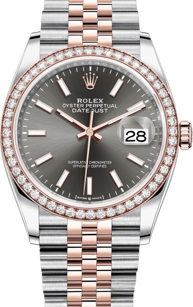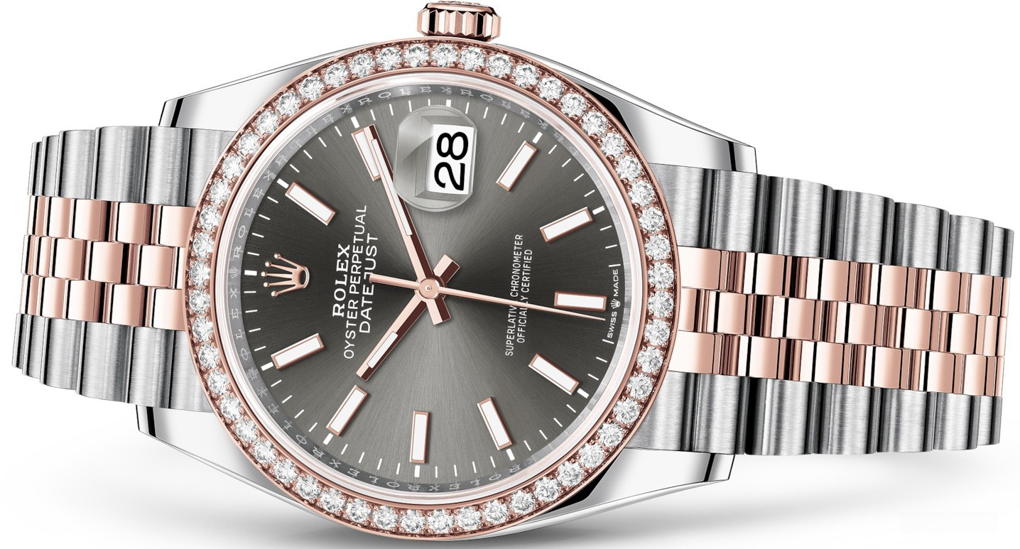 Часы Rolex 126281rbr-0001 изготовлены из нержавеющей стали и розового золота 18к размером 36 х 11 мм. Внутри корпуса установлен автоматический механизм, Калибр 3235 с запасом хода 70 часов. Механизм имеет сертификат швейцарского хронометра, выдаваемый сверхточным часам, успешно прошедшим тестирование в Официальном швейцарском институте хронометрии (COSC). Браслет из розового золота и нержавеющей стали. Циферблат серый. Водонепроницаемость до 100 метров. Безель из белых бриллиантов.