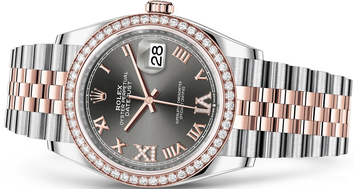 Часы Rolex 126281rbr-0011 изготовлены из нержавеющей стали и розового золота 18к размером 36 х 11 мм. Внутри корпуса установлен автоматический механизм, Калибр 3135 с запасом хода 48 часов. Механизм имеет сертификат швейцарского хронометра, выдаваемый сверхточным часам, успешно прошедшим тестирование в Официальном швейцарском институте хронометрии (COSC). Браслет из розового золота и нержавеющей стали. Циферблат серый с белыми бриллиантами. Безель из белых бриллиантов.