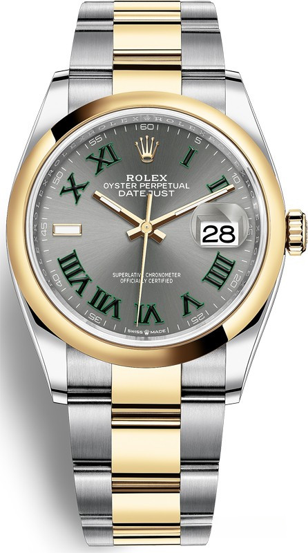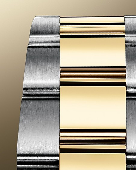 Корпус часов изготовлен из нержавеющей стали и желтого золота 18к. Размер корпуса 36 мм, водонепроницаемость до 100 м. Циферблат серый. На нем отображаются часы, минуты, секунды и дата. Часы комплектуются автоматическим механизмом, Калибр 3235 с запасом хода 70 часов. Поставлется на браслете из нержавеющей стали и желтого золота 18к.
