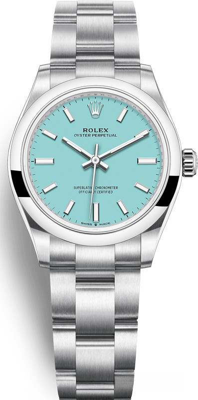 Часы Rolex Oyster Perpetual являются официально сертифицированным хронометром COSC, выпущены в круглом корпусе из нержавеющей стали. Размер составляет 31 мм, водонепроницаемость 100 м. Внутри корпуса установлен автоматический механизм, Калибр 2232, обладающий запасом хода 55 часов. На голубом циферблате отображаются часы, минуты, секунды. Часы комплектуются браслетом из нержавеющей стали.