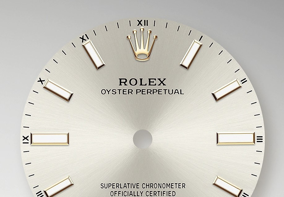Часы Rolex Oyster Perpetual являются официально сертифицированным хронометром COSC, выпущены в круглом корпусе из нержавеющей стали. Размер составляет 34 мм, водонепроницаемость 100 м. Внутри корпуса установлен автоматический механизм, Калибр 2232, обладающий запасом хода 55 часов. На серебристом циферблате отображаются часы, минуты, секунды. Часы комплектуются браслетом из нержавеющей стали.