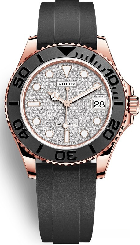 Часы Rolex Yacht-Master 37mm Everose Gold представлены в корпусе размером 37 мм из розового золота 18к с водонепроницаемостью 100 метров. Внутри корпуса установлен автоматический механизм, Калибр 2236, обладающий запасом хода 55 часов. На циферблате с бриллиантовым паве отображаются часы, минуты, секунды, дата. Часы поставляются на каучуковом ремешке с вставкой из розового золота 18к.
