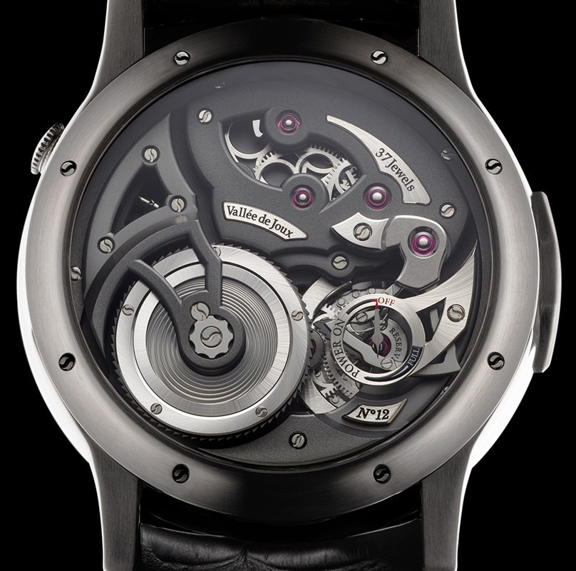 Часы представлены в корпусе из титана размером 43 х 15 мм и водонепроницаемостью до 30 метров. Внутри корпуса установлен механизм с ручным заводом. На черном эмалированном циферблате отображаются часы, минуты, секунды. Часы комплектуются ремешком из кожи аллигатора с титановой вставкой.