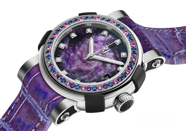 водонепроницаемость 100 м, безель из 16 аметистов, 16 розовых и 16 синих сапфиров, серия ограничена (100 шт.)