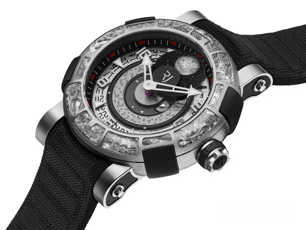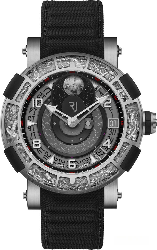 Часы Romain Jerome Arraw 6919 представлены в корпусе из титана размером 45 мм и водонепроницаемостью 100 м. Внутри корпуса установлен автоматический механизм, Калибр RJ-2180, обладающий запасом хода 38 часов. На сером циферблате отображаются часы, минуты, дата и фаза луны. Часы комплектуются текстильным ремешком с титановой вставкой. Серия ограничена - 100 штук.