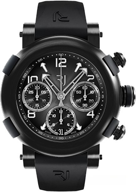 Часы Romain Jerome Arraw Chronograph 42 mm представлены в корпусе из керамики диаметром 42 мм, водонепроницаемость до 100 метров. Внутри корпуса установлен автоматический механизм, Калибр RJ2041. На черном циферблате отображаются часы, минуты, секунды, дата, накопители хронографа. Часы комплектуются каучуковым ремешком с вставкой из титана.