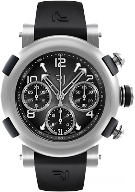 Часы Romain Jerome Arraw Chronograph 42 mm представлены в корпусе из титана диаметром 42 мм, водонепроницаемость до 100 метров. Внутри корпуса установлен автоматический механизм, Калибр RJ2041. На черном циферблате отображаются часы, минуты, секунды, дата, накопители хронографа. Часы комплектуются каучуковым ремешком с вставкой из титана.