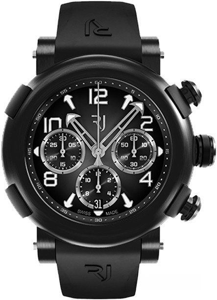 Часы Romain Jerome Arraw Chronograph 45 mm представлены в корпусе из керамики диаметром 45 мм, водонепроницаемость до 100 метров. Внутри корпуса установлен автоматический механизм, Калибр RJ2040. На черном циферблате отображаются часы, минуты, секунды, дата, накопители хронографа. Часы комплектуются каучуковым ремешком с вставкой из титана.