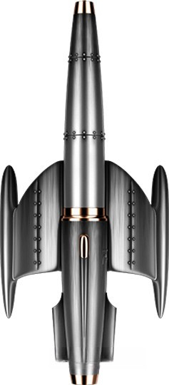 Шариковая ручка RJ изготовлена из нержавеющей стали с покрытием DLC. Корпус снабжен боковыми крыльями, напоминающими крылья истребителя. Аксессуар выпущен ограниченной серией 888 шт.
