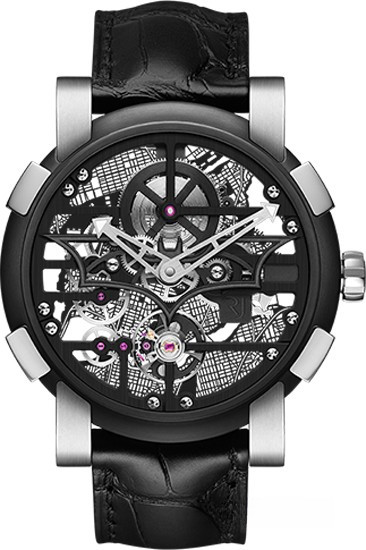 Часы Skylab Batman оснащены Калибром RJ004-М. Частота 28,800 пк/ч. Камни - 21 шт. Запас хода 48 часов. Водонепроницаемость 30 метров. Функции – центральная часовая и минутная стрелки, маленькая секундная стрелка на отметке 9 часов. Корпус диаметром 48 мм. Сталь с черным PVD покрытием. Задняя крышка корпуса из сапфира. Циферблат черный хромированный, скелетонизированный механизм. Ремешок из кожи аллигатора черного цвета. Застежка из стали. Часы выпущены ограниченной серией.