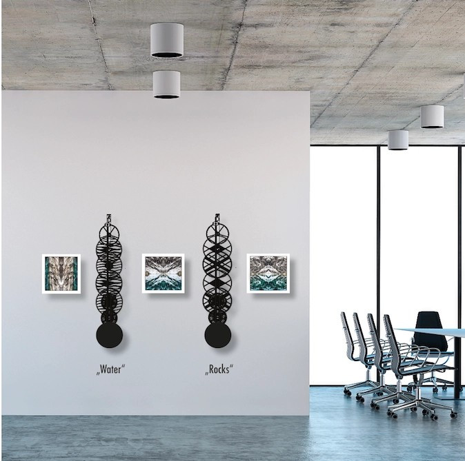 Настенные часы Schlumpf Time Machines TM3 ELEMENTS OF NATURE представлены в корпусе из нержавеющей стали, анодированного алюминия. На скелетированном циферблате отображаются часы, минуты. Часы выпущены ограниченной серией 20 шт.