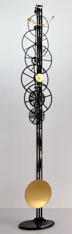 Настольные часы Schlumpf Time Machines TM3 JOHANN представлены в корпусе из нержавеющей стали и анодированного алюминия. На скелетированном циферблате отображаются часы, минуты.
