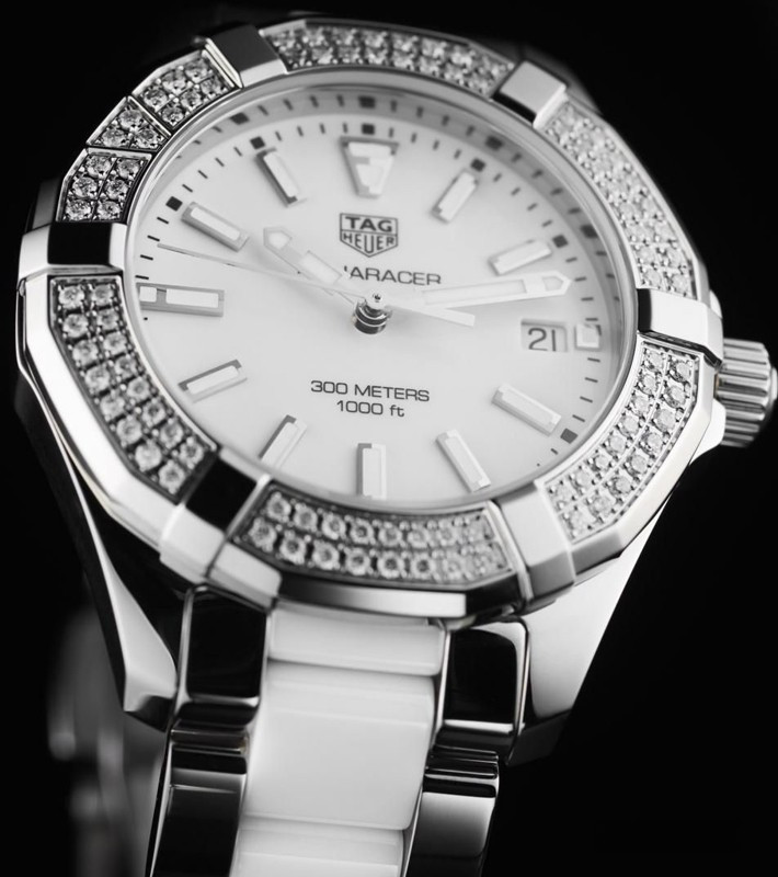 Часы TAG Heuer Aquaracer Quartz 35 mm представлены в корпусе из нержавеющей стали размером 35 мм водонепроницаемостью 300 метров. Внутри корпуса установлен кварцевый механизм. На белом циферблате отображаются часы, минуты, секунды, дата. Часы поставляются на браслете из нержавеющей стали и керамики. Безель из белых бриллиантов.