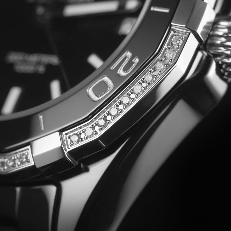 водонепроницаемость 300 м, вращающийся безель из белых бриллиантов