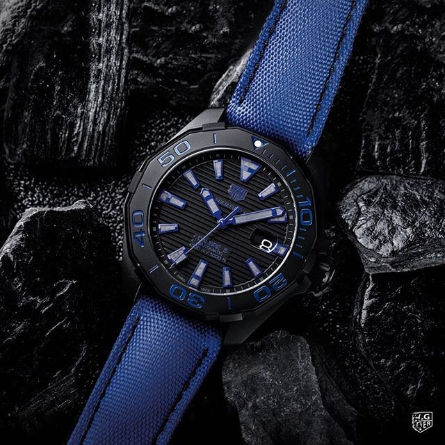 Новинка имеет круглый корпус, изготовленный из титана с черным карбидным покрытием, диаметром 43 мм, водонепроницаемый до 300 метров. На торце защищенной завинчивающейся рифленой заводной головки, расположенной на 3 часах, выгравирована эмблема бренда TAG Heuer. Вращающийся однонаправленный керамический дайверский безель. Сапфировое стекло, с антибликовым покрытием и встроенной лупой над указателем даты на 3 часах, защищает циферблат матово-черного цвета, отделанный горизонтальными полосками, с накладными часовыми индексами, покрытыми, как и стрелки, люминесцентным составом. Модель оснащена швейцарским автоматическим механизмом TAG Heuer Calibre 5 (базовый калибр Sellita SW200), с балансовой частотой 28800 полуколебаний в час (4 гц), 38-часовым запасом хода, функциями индикации часов, минут, секунд (посредством соответствующих центральных стрелок) и даты (посредством соответствующего цифрового указателя в прямоугольной апертуре, расположенной на 3 часах). Поставляется на нейлоновом ремешке синего цвета с застежкой из титана с черным карбидным покрытием.