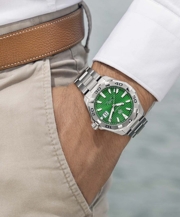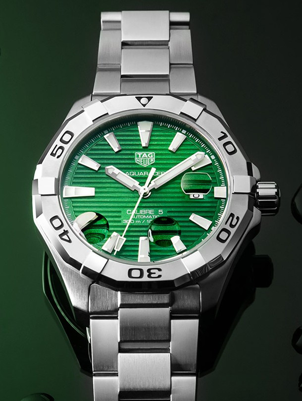 Часы TAG Heuer Aquaracer Calibre 5 43 mm представлены в корпусе из нержавеющей стали размером 43 мм водонепроницаемостью 300 метров. Внутри корпуса установлен автоматический механизм, Калибр 5, обладающий запасом хода 38 часов. На зеленом гильошированном циферблате отображаются часы, минуты, секунды, дата. Часы поставляются на браслете из нержавеющей стали.