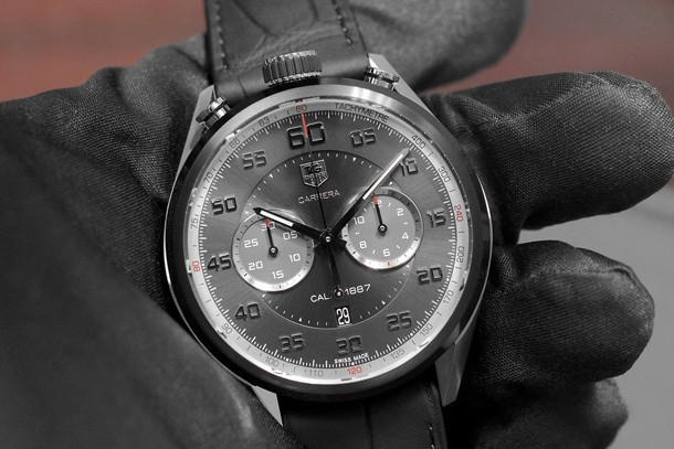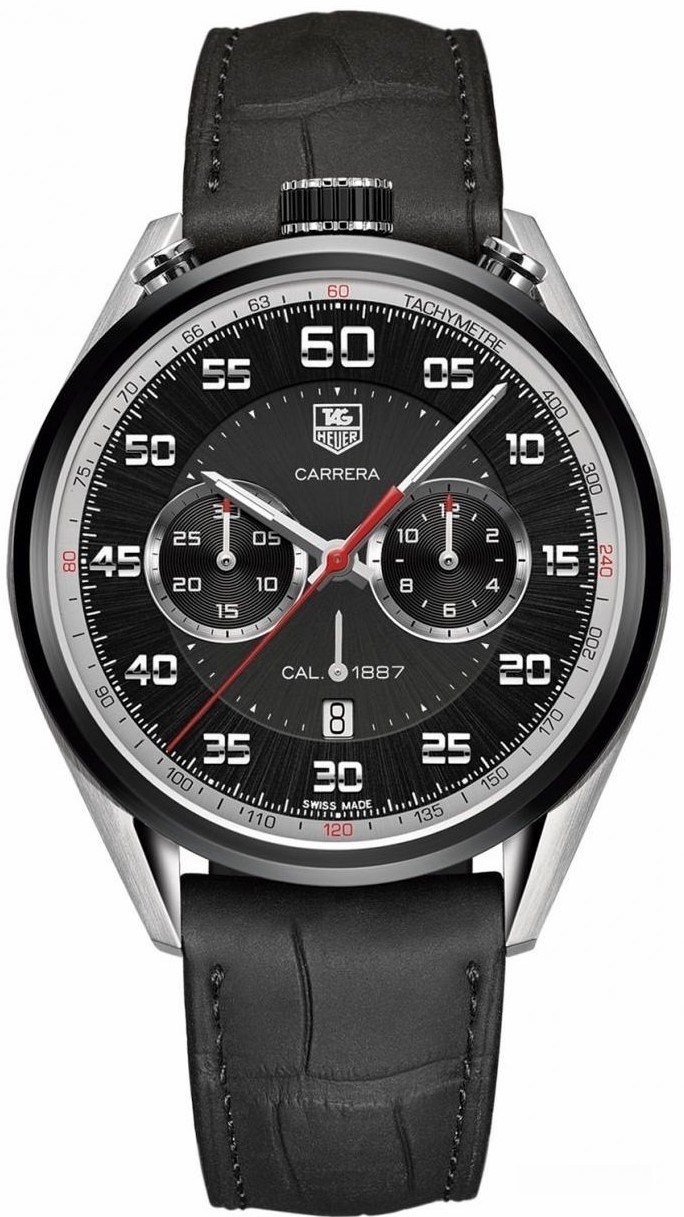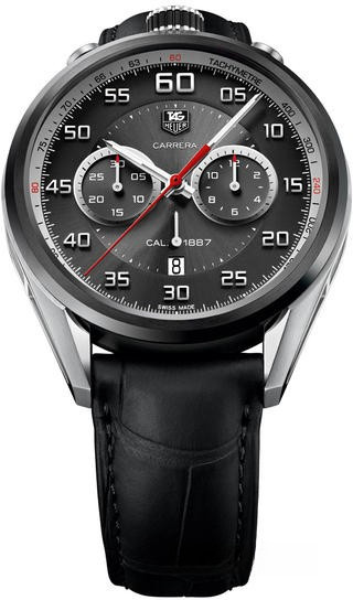 Круглый корпус новинки изготовлен из титана и нержавеющей стали с полированной, матовой и пескоструйной обработкой, диаметром 45,0 мм. Рифленая заводная головка расположена на 12 часах, пушеры хронографа - на 11 и 13 часах. Безель с черным покрытием из карбида титана. Изогнутое сапфировое стекло установлено на передней стороне корпуса и на его задней крышке (тонированное). Циферблат черного цвета с лучистой отделкой, накладными полированными арабскими цифрами, часовой и минутной стрелками с люминесцентным покрытием белого цвета. Хронографические стрелки с красными наконечниками. На фланце циферблата располагается круглая тахиметрическая шкала. Модель оснащена швейцарским автоматическим механизмом TAG Heuer Cal. 1887, с балансовой частотой 28800 полуколебаний в час (4 гц), 50-часовым запасом хода, функциями индикации часов, минут (посредсредством соответствующих центральных стрелок), секунд (посредством соответствующей стрелки без разметки, расположенной на 6 часах), даты (посредством соответствующего цифрового указателя в апертуре, расположенной на 6 часах), а также с хронографом (центральная секундная стрелка, 30-минутный счетчик, расположенный на 12 часах, 12-часовый счетчик, расположенный на 6 часах). Поставляется на черном кожаном ремешке с застежкой из черного титана.
