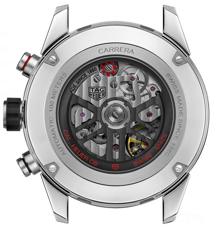 Часы TAG Heuer Calibre Heuer 02 представлены в корпусе из нержавеющей стали с керамическим безелем размером 45 мм водонепроницаемостью 100 метров. Внутри корпуса установлен автоматический механизм с функцией хронографа, Калибр Heuer 02. На сером отображаются часы, минуты, секунды, дата, тахиметр, накопители хронографа. Часы поставляются на каучуковом ремешке с вставкой из нержавеющей стали.
