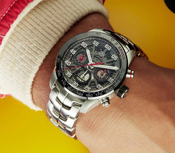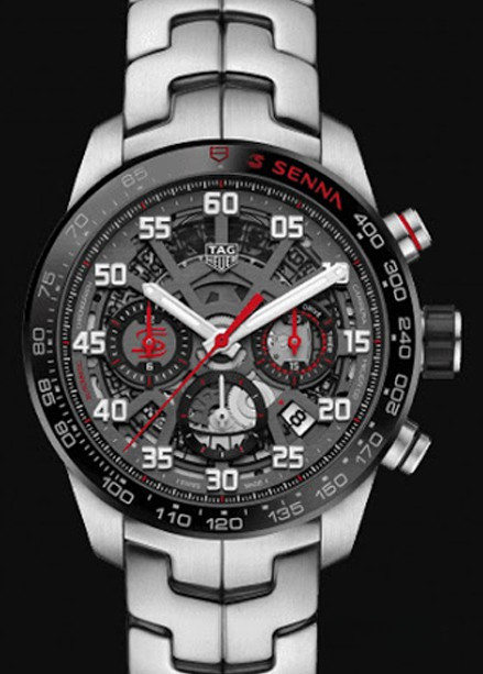 Часы TAG Heuer Carrera Calibre Heuer 02 Senna Edition выпущены в корпусе из нержавеющей стали размером 43 мм и водонепроницаемостью 100 м. Внутри корпуса установлен автоматический механизм с запасом хода 80 часов. На сером скелетированном циферблате отображаются часы, минуты, секунды, дата, тахиметр, накопители хронографа. Часы комплектуются браслетом из нержавеющей стали.
