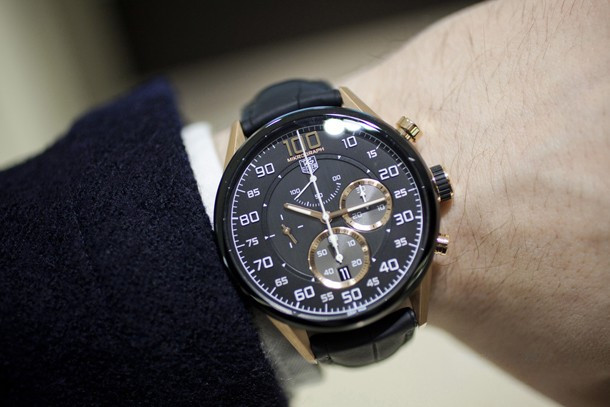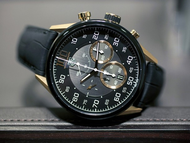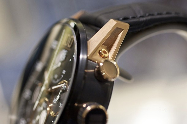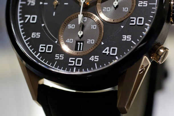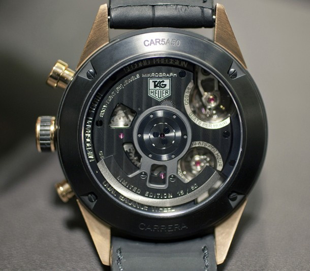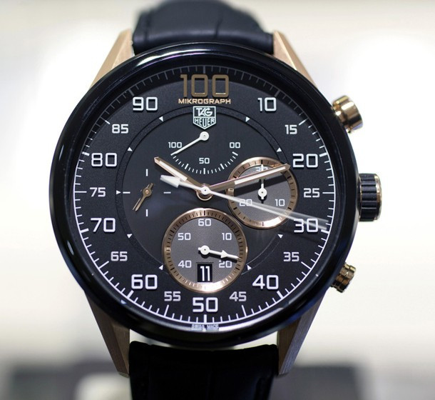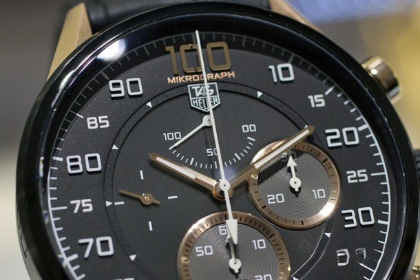 TAG Heuer Carrera Mikrograph Avant Garde развивает концепт двойной цепной передачи, внедренный в производство в январе 2011 г. Эта технология позволяет устранить негативное влияние часов и хронографа друг на друга в интегрированном механизме и открывает путь к прохождению сертификации C.O.S.C. В этой новаторской модели одновременно используются сразу два спусковых механизма – с частотами баланса 28 800 и 360 000 полуколебаний в час. Своей неподражаемой точностью она обязана двум не зависящим друг от друга кинематическим цепям, одна из которых работает с обычной, а другая – с высокой балансовой частотой. Корпус часов изготовлен из титана, его диаметр 45 мм. Механизм хронографа обладает запасом хода 42 часа.