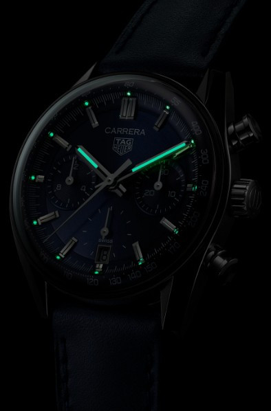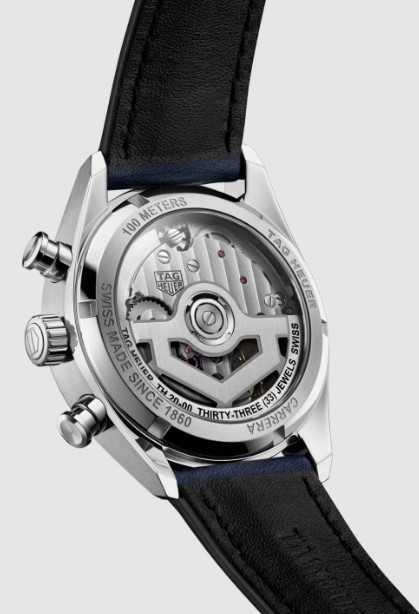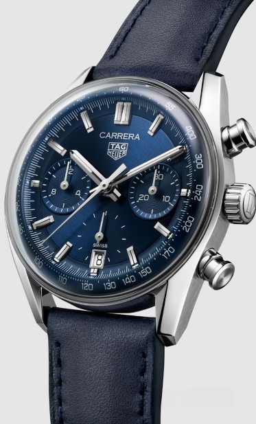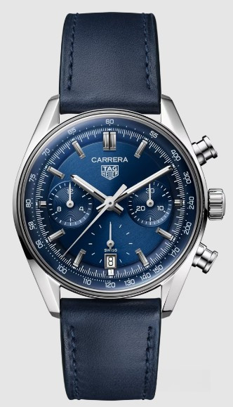 Часы TAG Heuer Carrera Chronograph 39 представлены в корпусе размером 39 мм из нержавеющей стали водонепроницаемостью 100 метров. Внутри корпуса установлен автоматический механизм, Калибр TH20-00, обладающий запасом хода 80 часов. На синем циферблате отображаются часы, минуты, секунды, дата. Часы поставляются на кожаном ремешке с застежкой из нержавеющей стали.