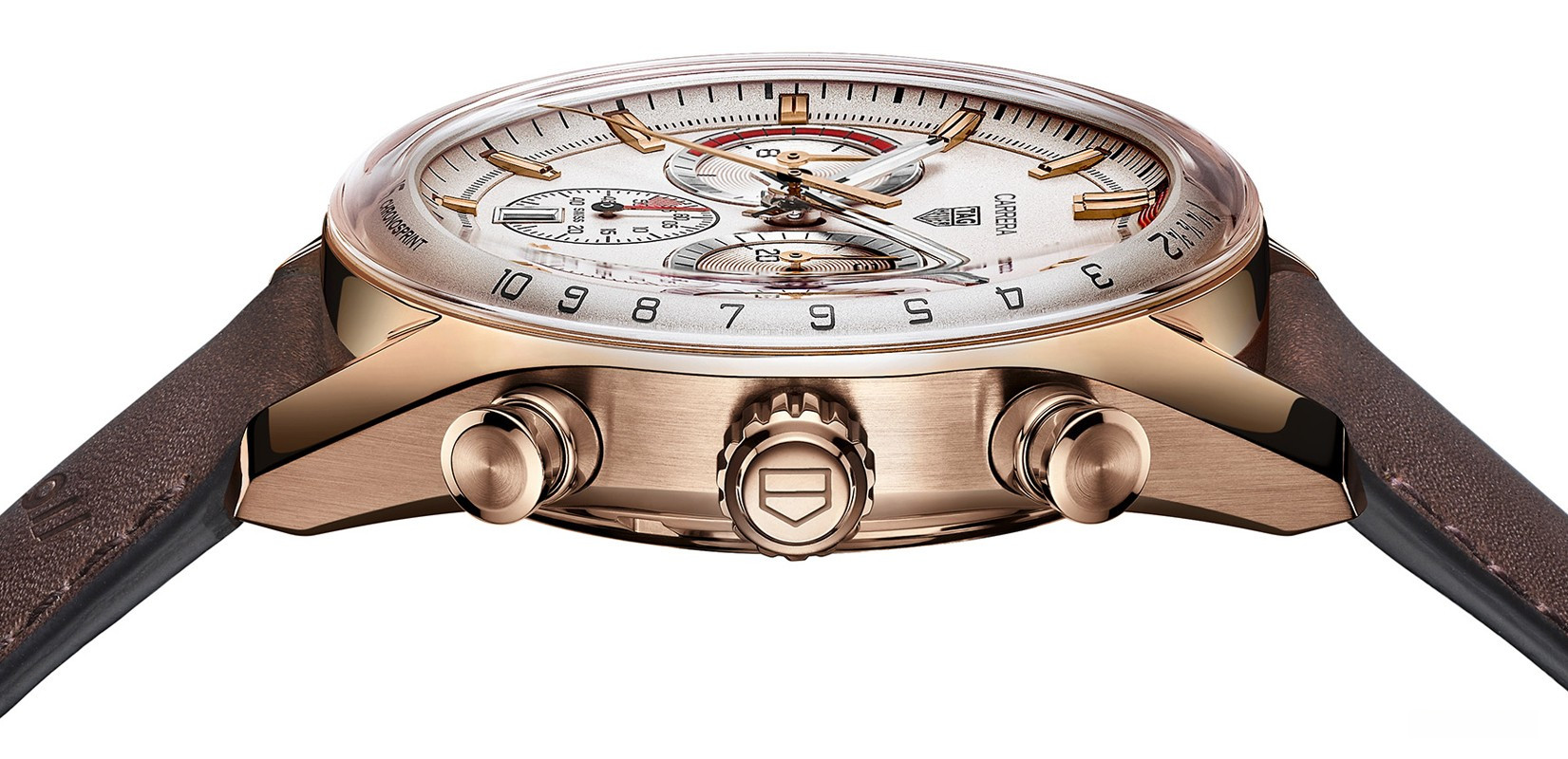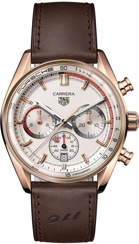 Часы TAG Heuer Carrera Chronosprint x Porsche представлены в корпусе размером 42 х 14.9 мм из розового золота 18к водонепроницаемостью 100 метров. Внутри корпуса установлен автоматический механизм, Калибр TH20-08, обладающий запасом хода 80 часов. На серебристом циферблате отображаются часы, минуты, секунда, дата, тахиметр. Часы поставляются на кожаном ремешке с золотой застежкой.