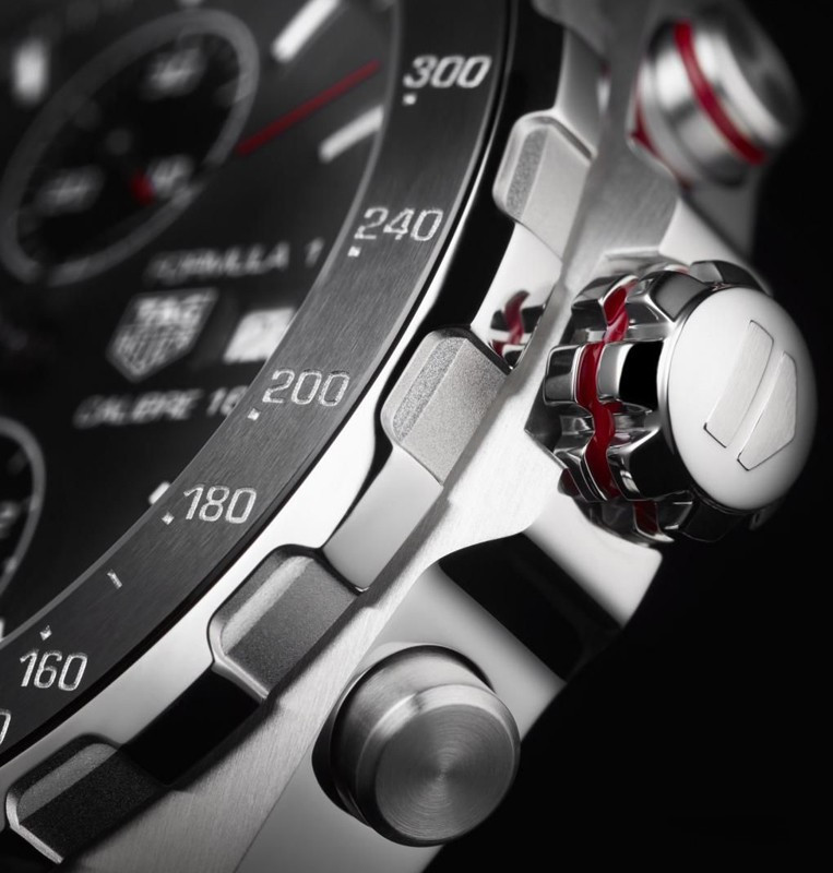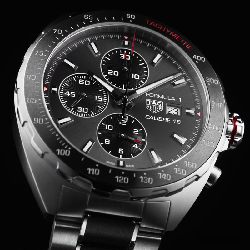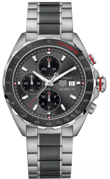 Часы TAG Heuer Formula 1 Calibre 1 представлены в корпусе из нержавеющей стали с керамическим безелем размером 44 мм водонепроницаемостью 200 метров. Внутри корпуса установлен автоматический механизм с функцией хронографа, Калибр 16. На сером циферблате отображаются часы, минуты, секунды, дата, тахиметр, накопители хронографа. Часы поставляются на браслете из нержавеющей стали и керамики.