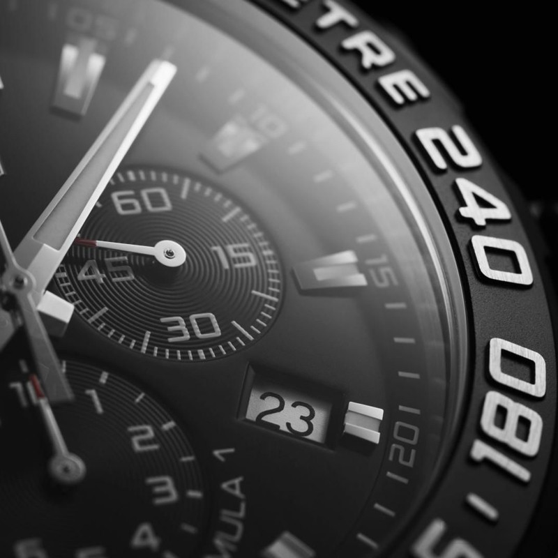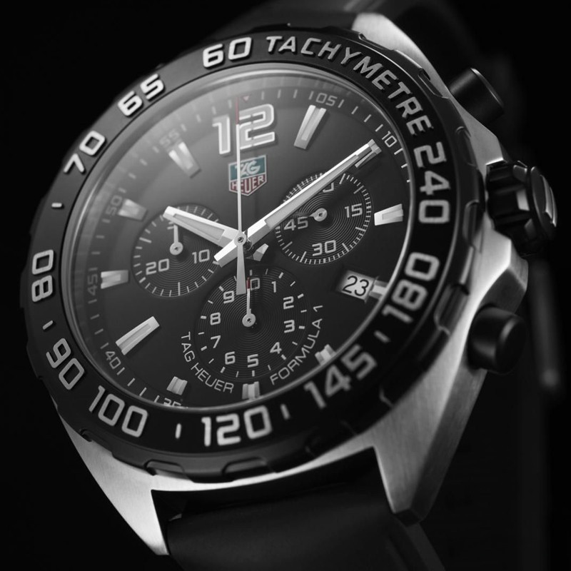Часы TAG Heuer Formula 1 Quartz 42 mm представлены в корпусе из нержавеющей стали размером 42 мм водонепроницаемостью 200 метров. Внутри корпуса установлен кварцевый механизм с функцией хронографа. На черном циферблате отображаются часы, минуты, секунды, дата, тахиметр, накопители хронографа. Часы поставляются на каучуковом ремешке с вставкой из нержавеющей стали.
